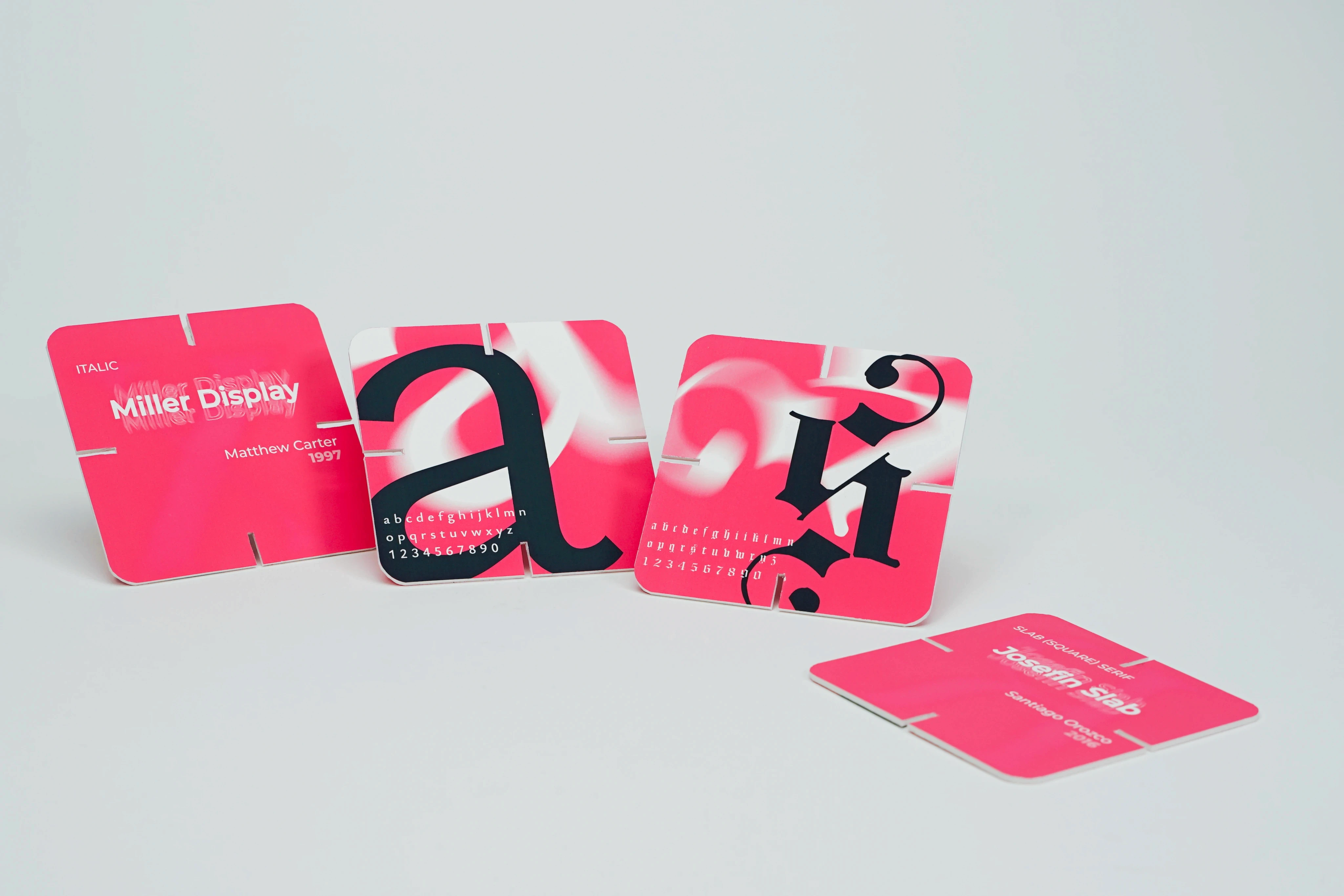 This introductory typography project features a curated collection of typefaces, each designed within the constraints of a square card format. The concept was to explore type as both form and function while maintaining visual harmony across the set. A custom-designed package unifies the collection, establishing a cohesive brand identity for the “house of cards.” The final result is a high-quality, engaging typographic set that celebrates design, play, and structure.