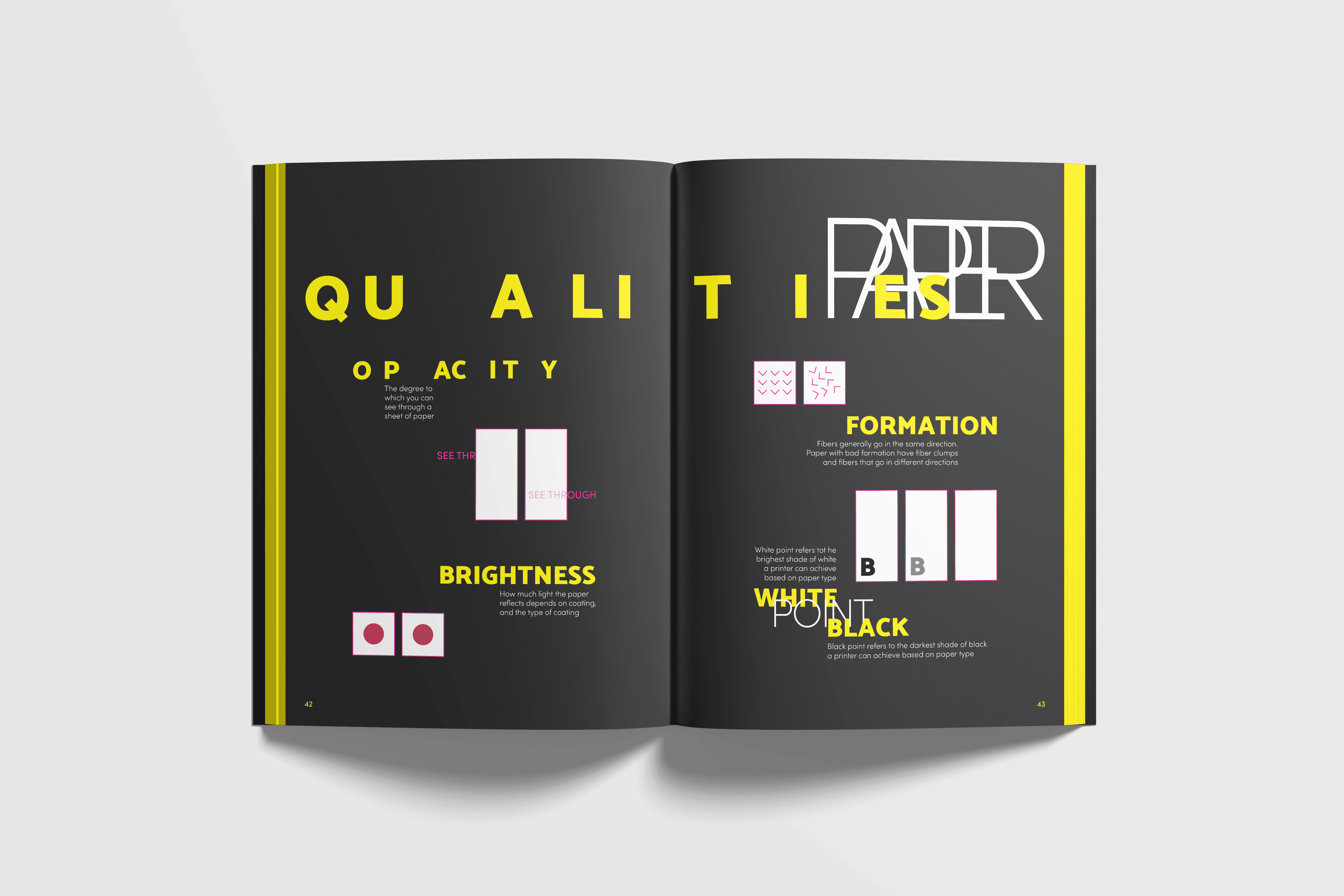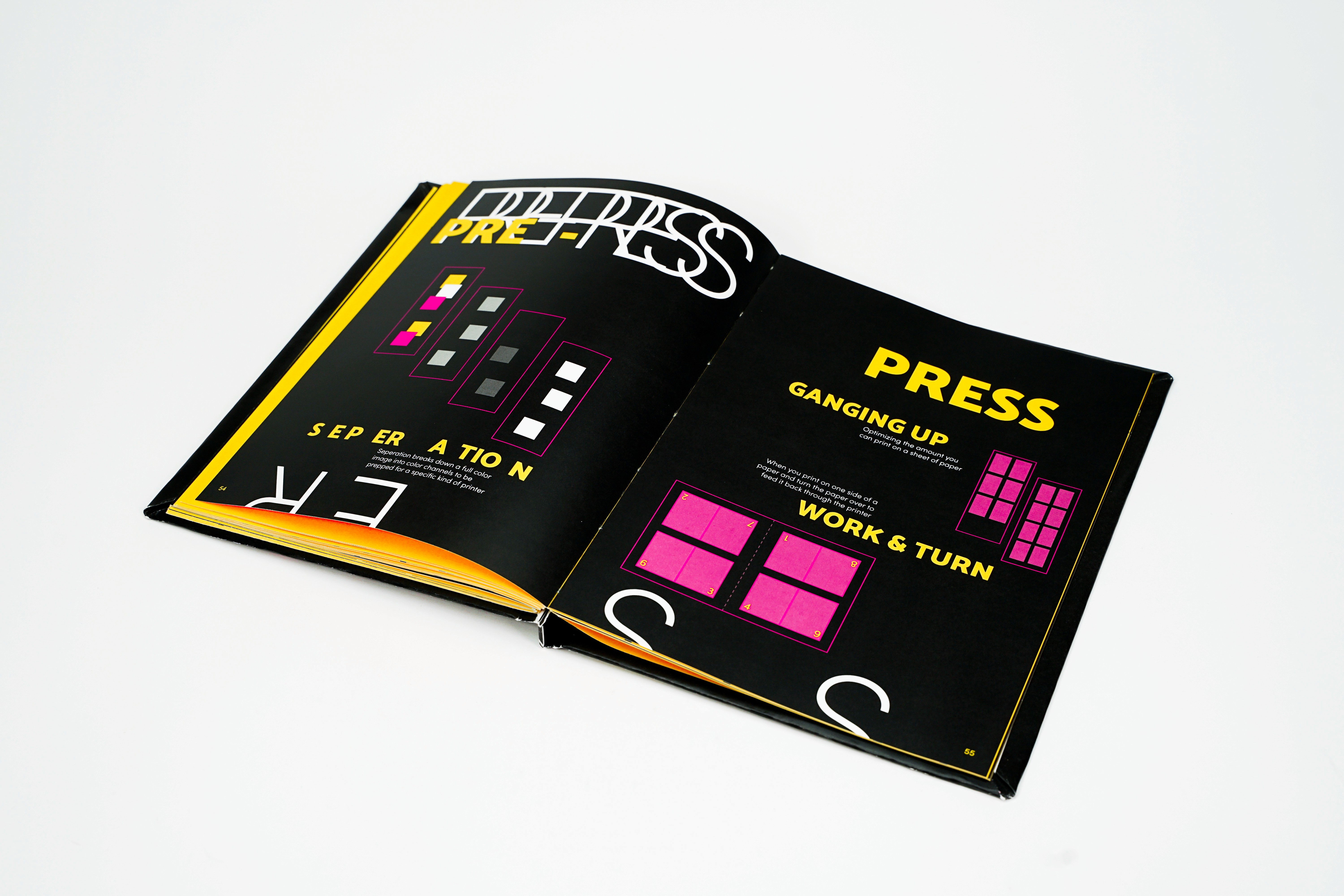 This workbook is designed to teach key principles of print production, guiding designers in creating visually intelligent and technically sound print-ready work. Through its lessons, users will gain a strong understanding of type, image, and form, while learning to meet industry standards for pixels, paper, and ink. Inspired by the theme of “Confused yet Exciting,” the book features a dynamic range of layouts across spreads, bright color accents, and alternating page tones. The final design embraces visual unpredictability while maintaining clarity, resulting in a workbook that is both engaging and reflective of its intended ambivalence.