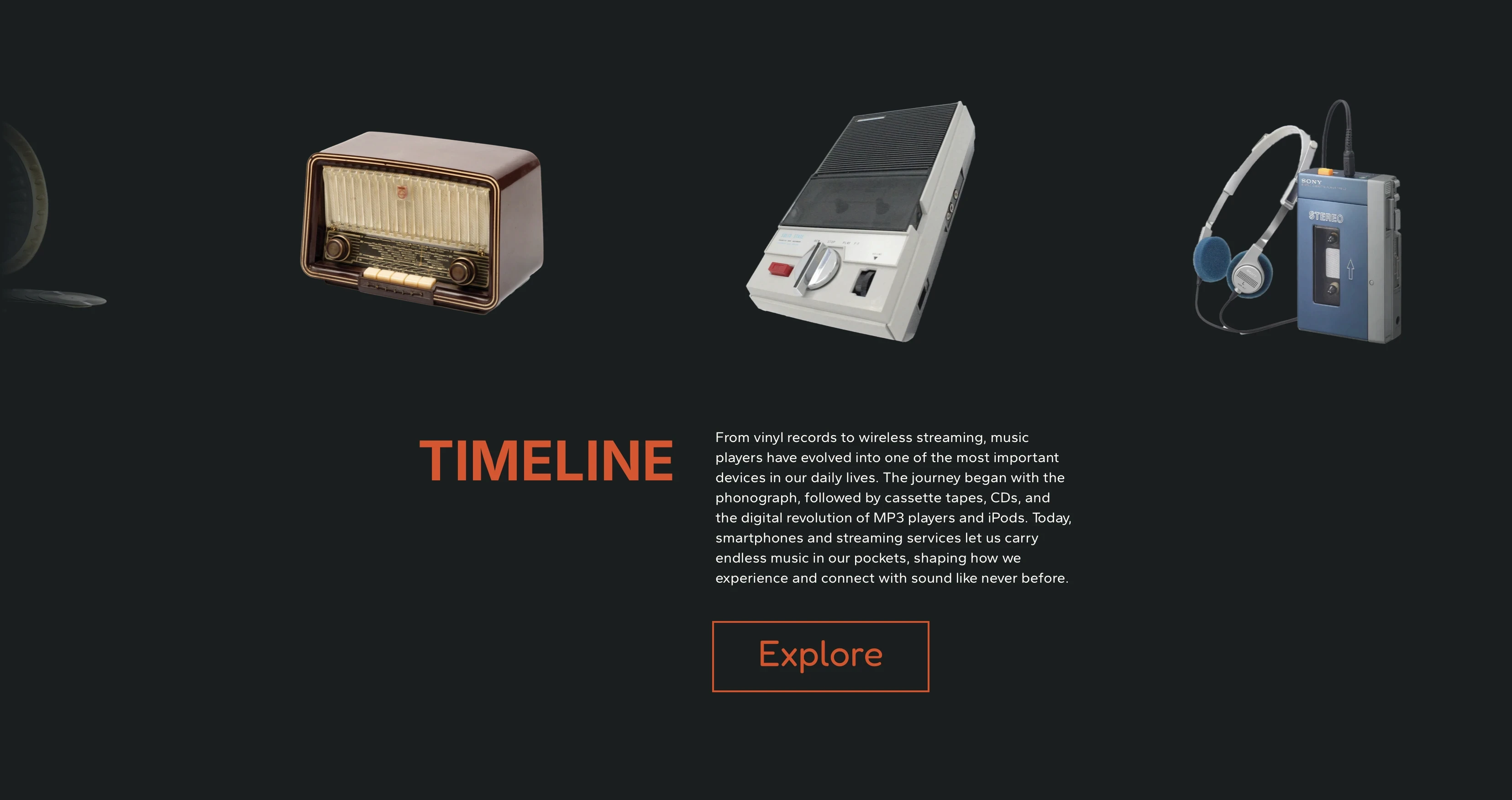 This project explores the evolution of personal music players through an interactive timeline, from the gramophone to the iPod touch (2007). Created using a no-code web builder, the goal was to demonstrate how intuitive tools—similar to Figma—can be used to design and develop a fully functional website.