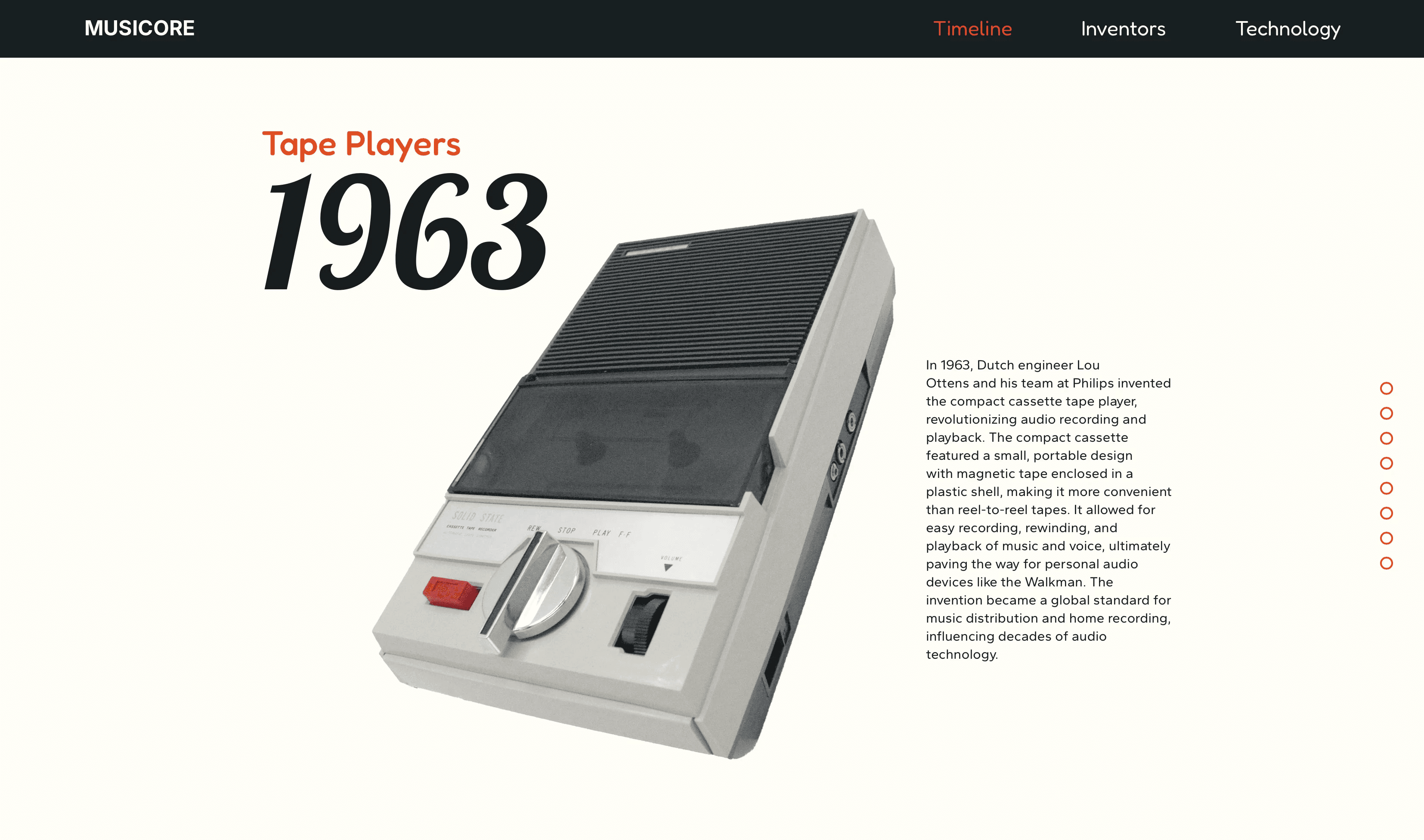 I focused on presenting information in a clear, engaging way, highlighting the unique features of each device while maintaining a structured and easy-to-navigate layout. Through this project, I aimed to combine visual storytelling with user-friendly interaction, making complex technological history accessible and enjoyable to explore.